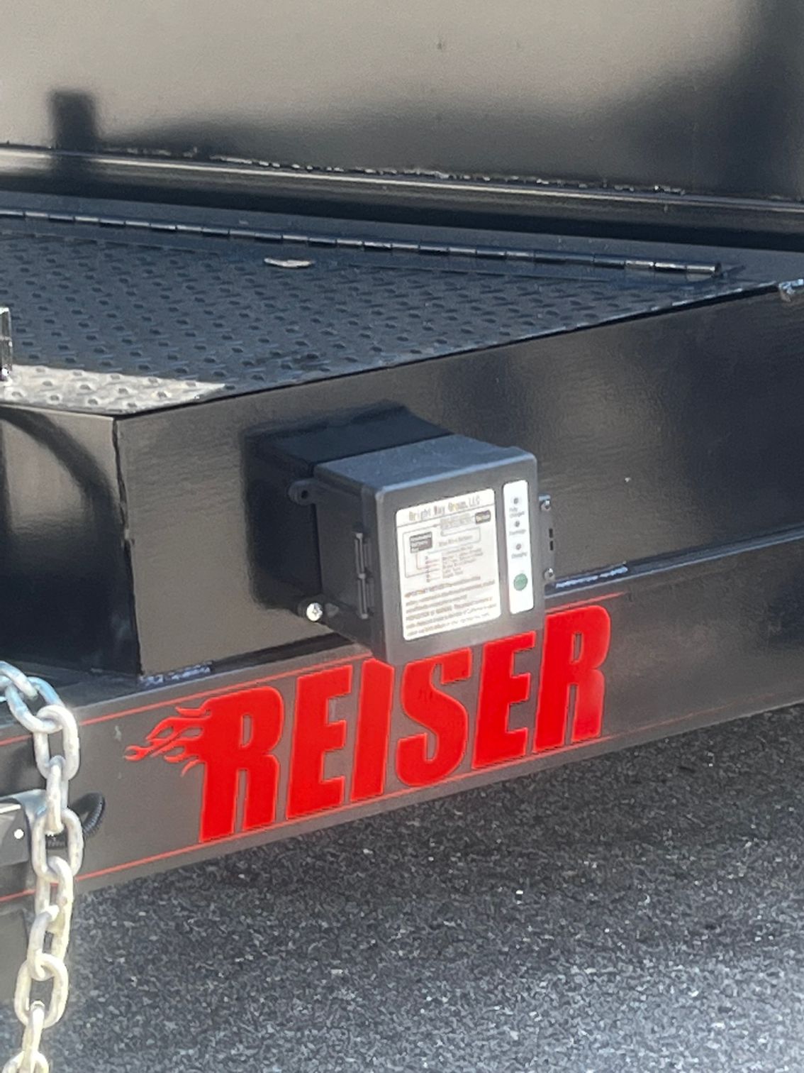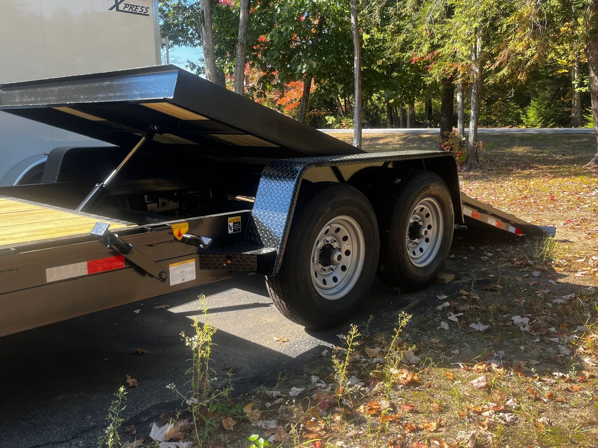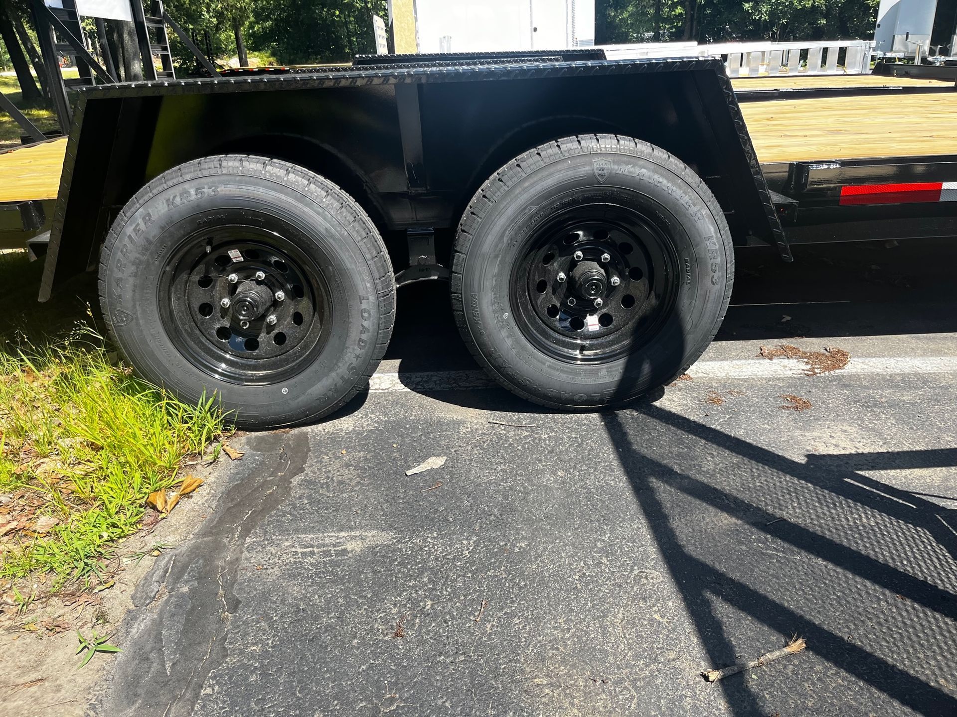 Axles and suspension: The trailer is equipped with two 7,000-pound EZ Lube Dexter axles with electric brakes.